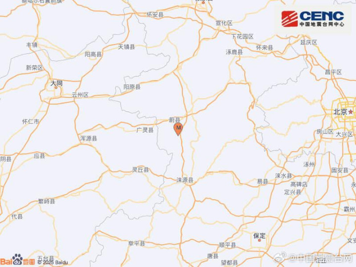 中国地震台网正式测定:8月12日14时01分在河北张家口市蔚县(北纬39.74度,东经114.63度)发生3.1级地震,震源深度12千米。