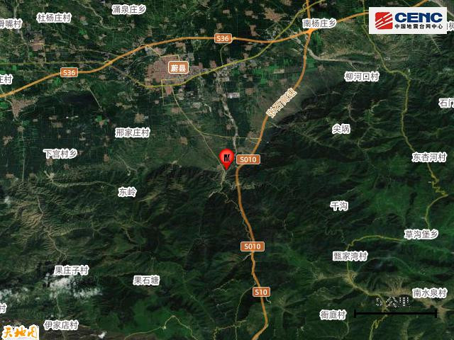 河北张家口市蔚县震中5公里范围内平均海拔约1151米。